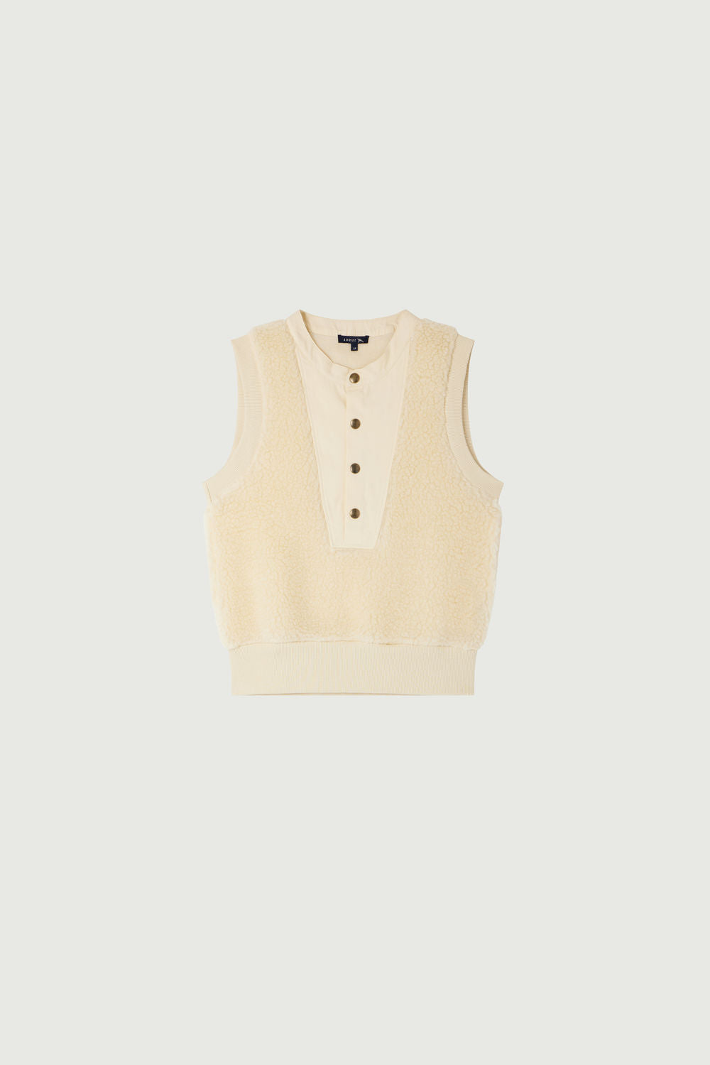BAILA is a sleeveless sweatshirt made from faux fur. Its straight cut, subtly cinched at the hem, creates an elegant silhouette while providing freedom of movement. Perfect for layering or wearing on its own, this sweatshirt combines warmth and style.