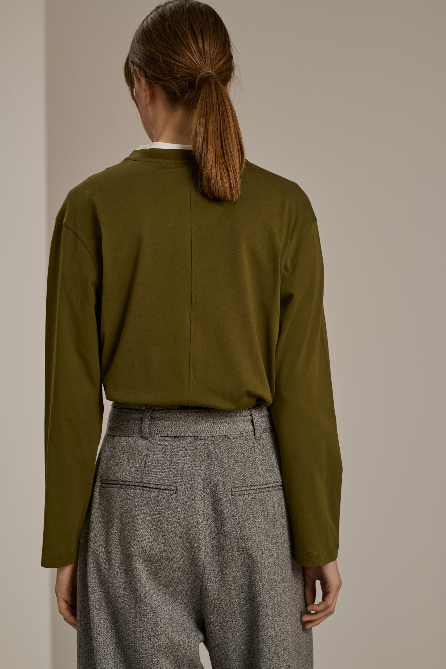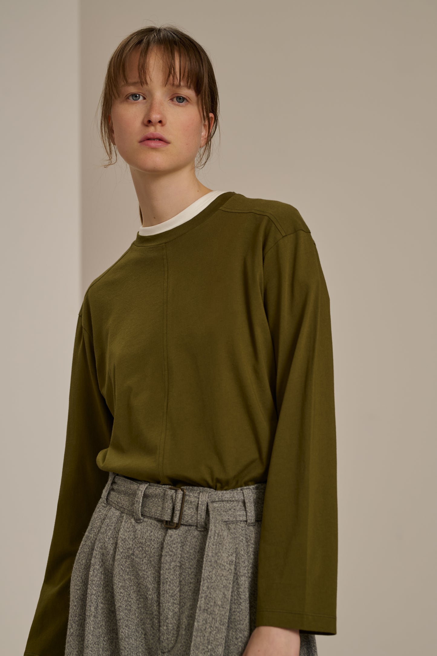ADELIE is a long-sleeved T-shirt made from extra-fine cotton. The shoulders and centre front are accentuated by offset topstitched seams that add texture. The Supima® cotton gives this exceptional jersey a soft, breathable feel, like a "second skin" knit.